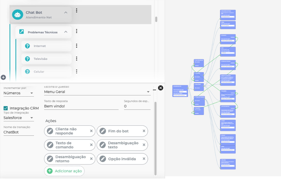 Crie bots inteligentes, habilite auto atendimento através de base de conhecimento e inteligência artificial, chame suas APIs ou suba uma base de dados para prover respostas personalizadas. Encaminhe o atendimento para um agente sempre que necessário, mantendo o histórico de atendimentos passados.